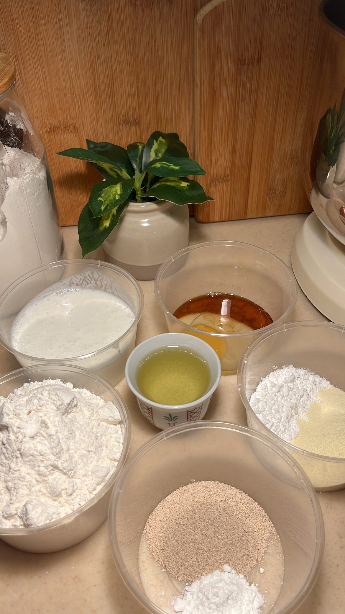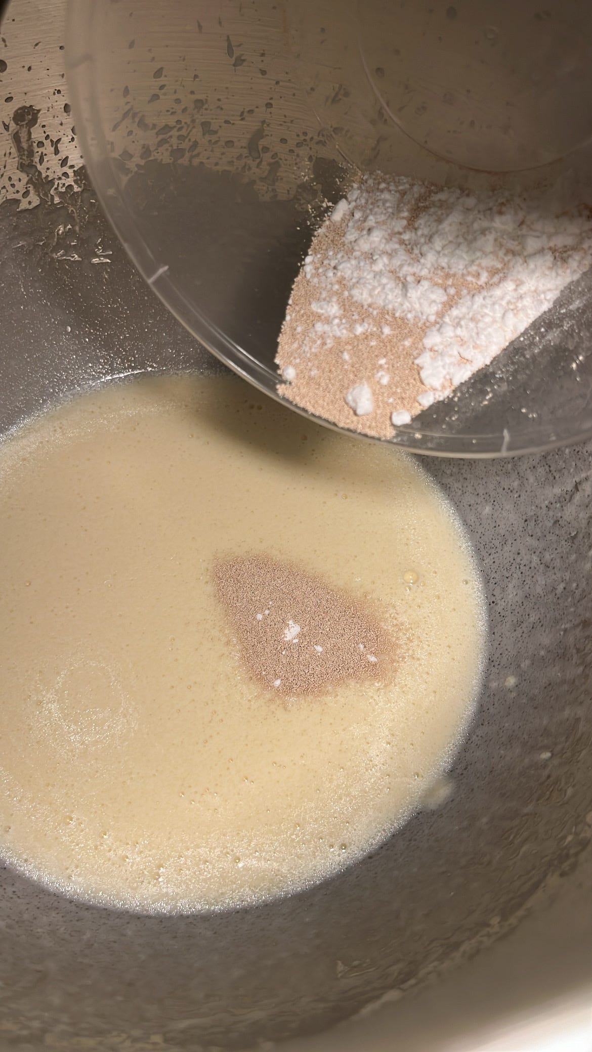 يضاف مقدار الخميرة والبكنج بودر