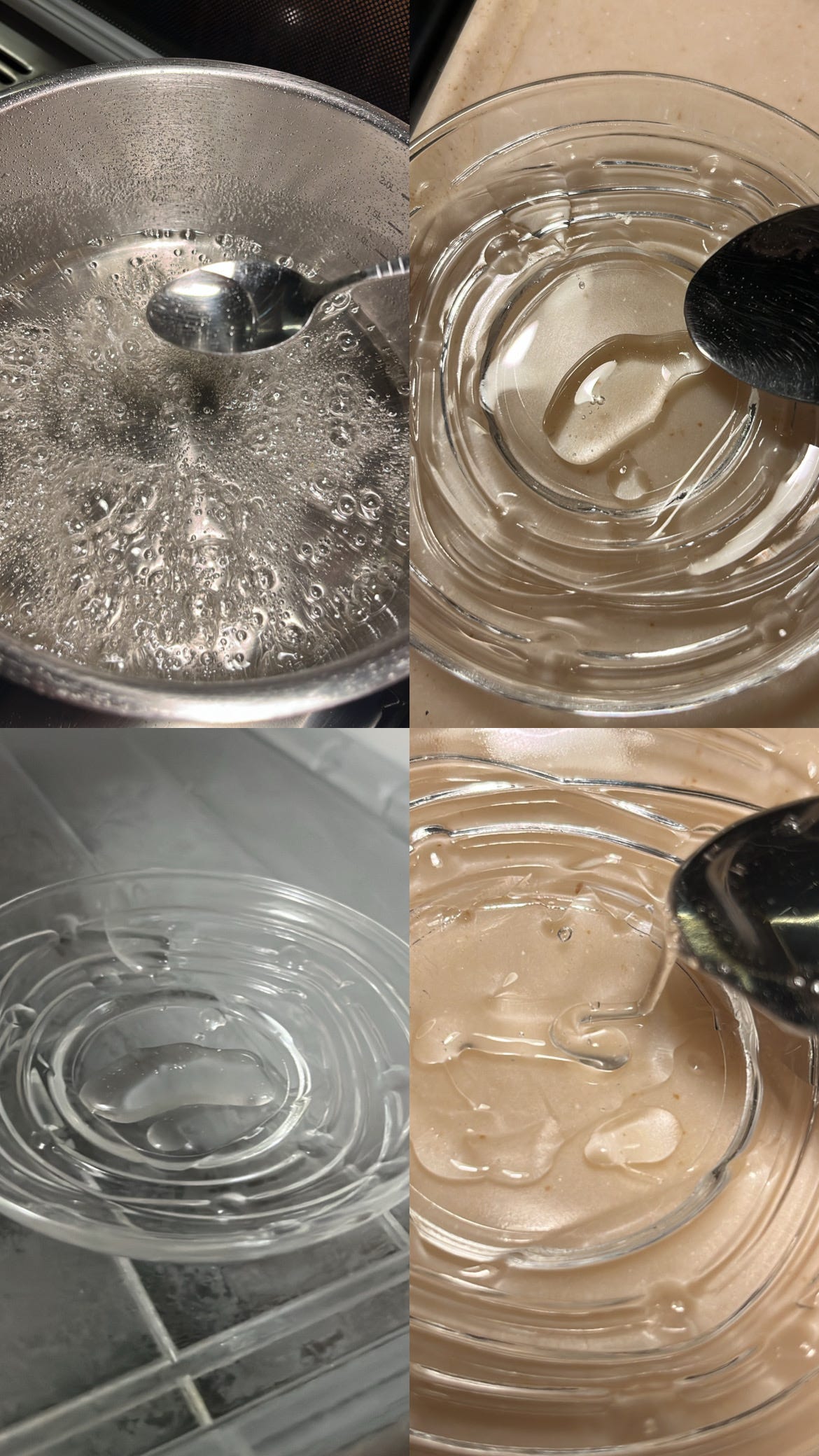 نقوم بإختبار القوام وذلك بوضع قطرات من الشيرة على طبق زجاجي ويوضع في المجمدة لمدة دقيقتين او ثلاث وبعد ذلك يختبر القوام ويفضل ان يكون مثل الصورة الموضحة بالأسفل ونتوقف عن غلي الشيرة