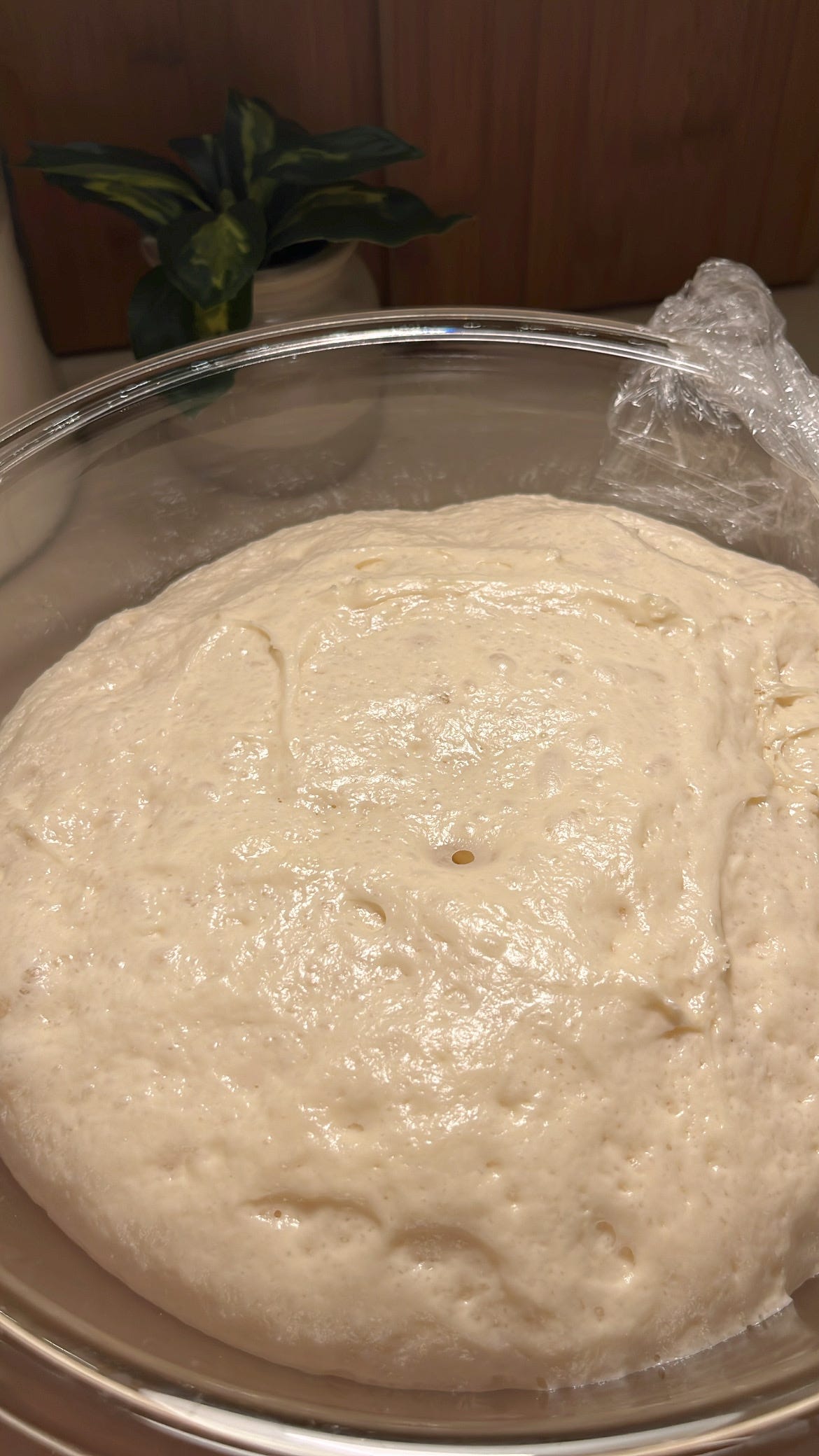ينقل الخليط في إناء واسع ويغطى جيداً بالنايلون اللاصق وتترك في مكان دافىء لمدة ساعة .